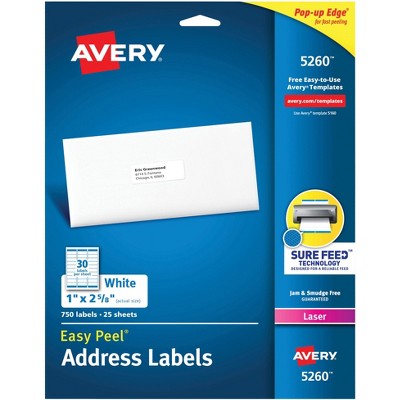 Avery Address Labels with Sure Feed for Laser Printers, 1" x 2-5/8", 3,750 Labels – Great for FBA Labels (5 Packs 5260)